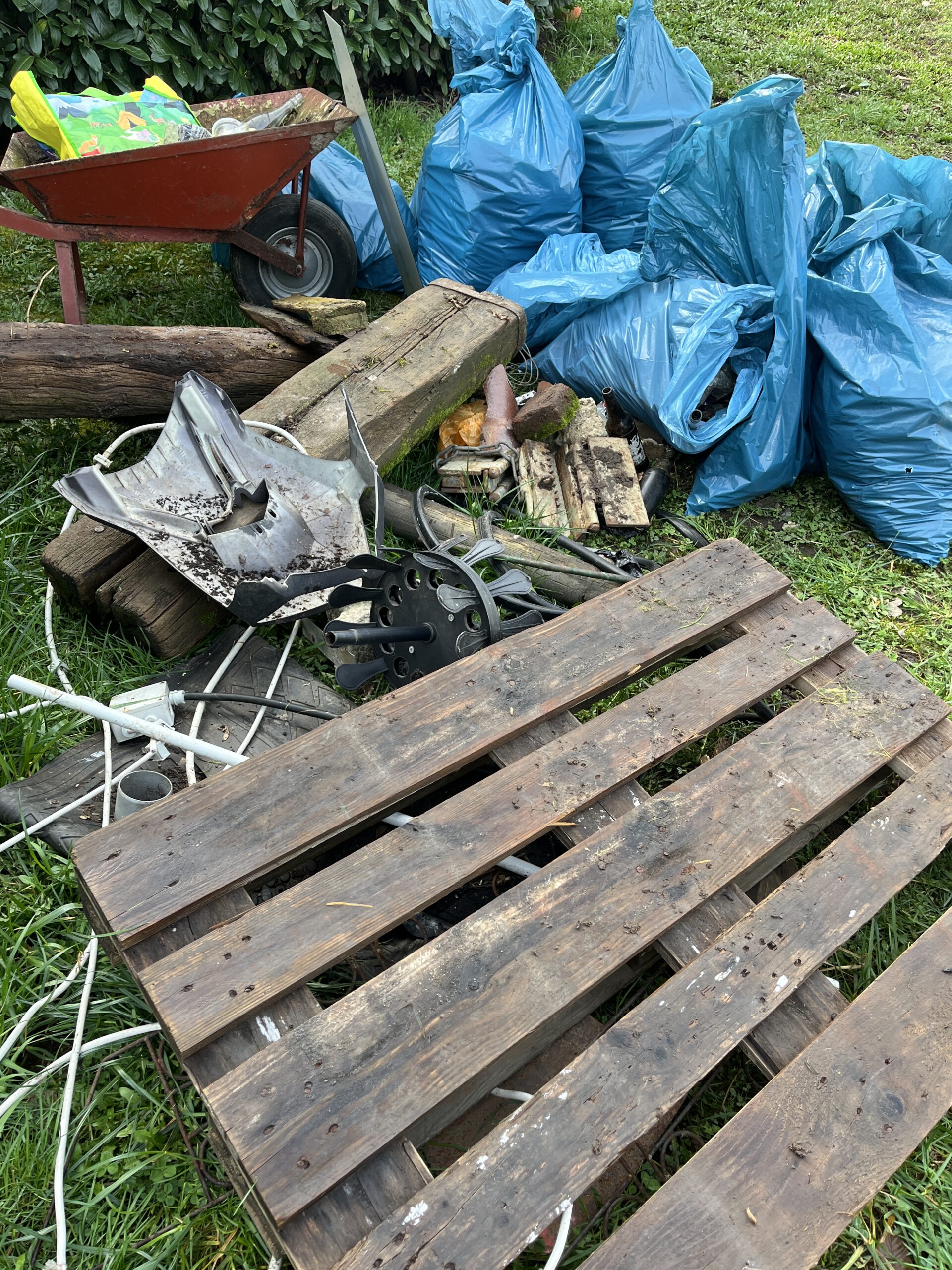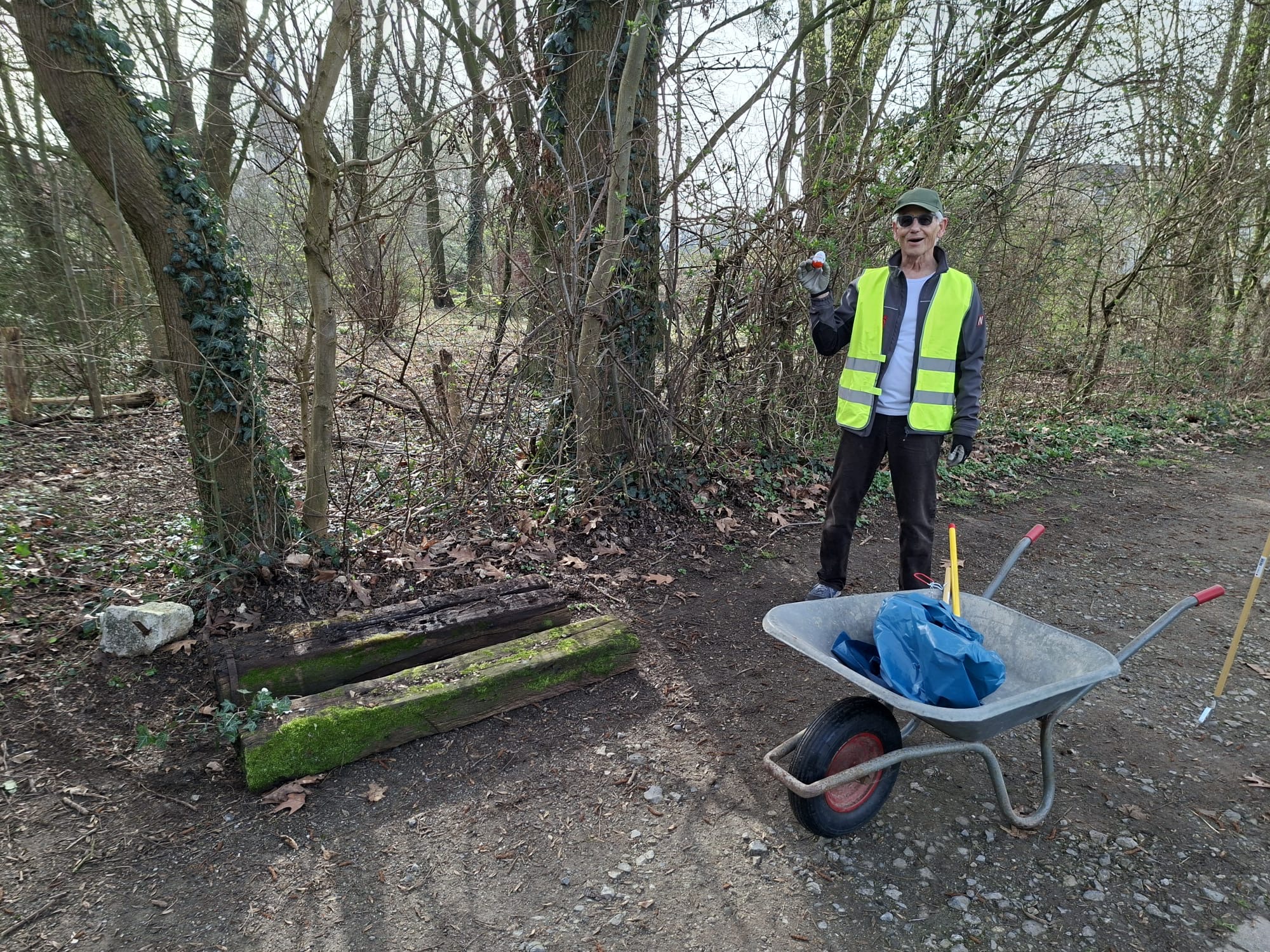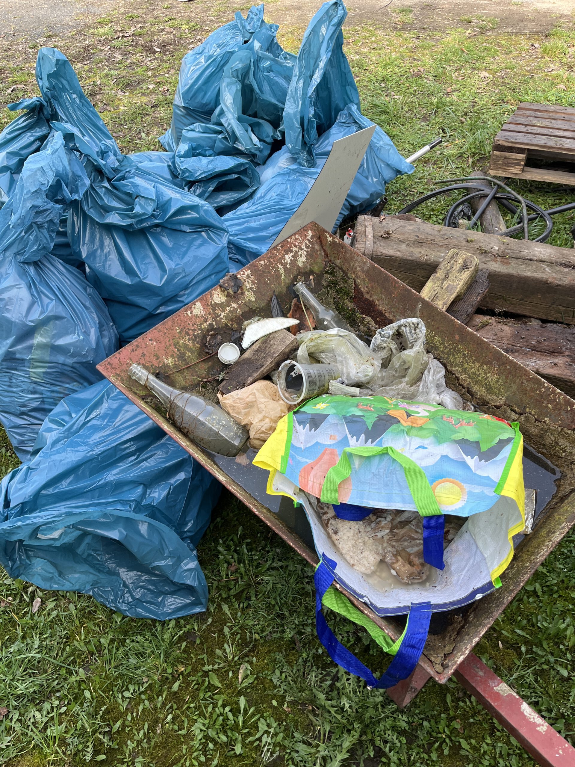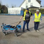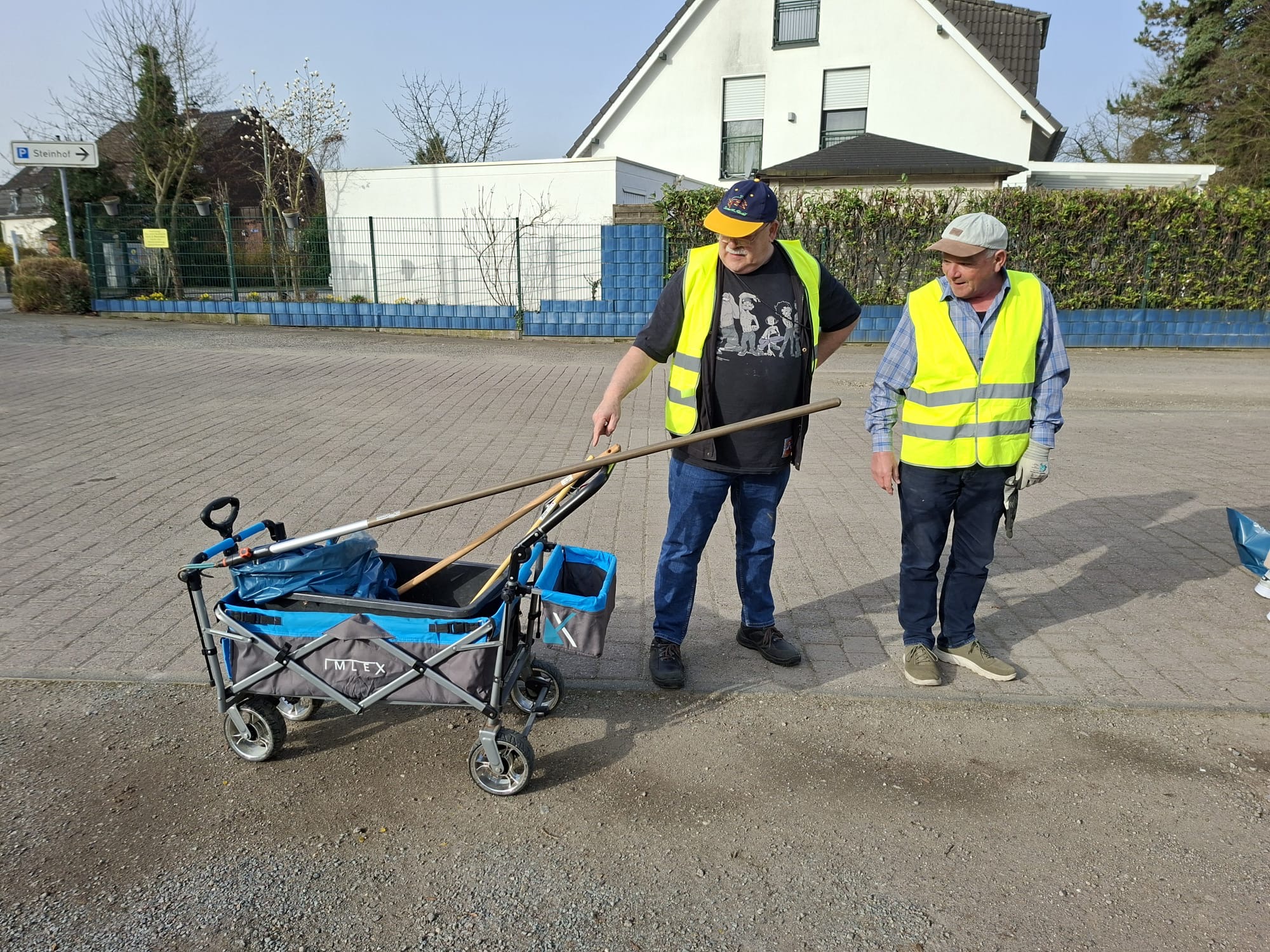 Neben einer robusten persönlichen Ausrüstung sollten – soweit vorhanden – Eimer, Schaufeln, Harken (wichtig), Straßenbesen und Schubkarren mitgebracht werden.
