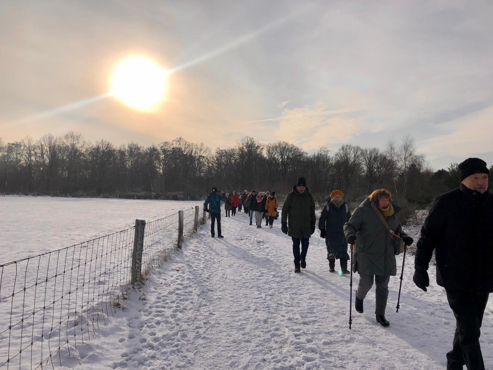 Die Busse werden uns zum Wandergebiet „De Groote Heide“ zwischen Venlo und der deutschen Grenze bringen. Das Wandergebiet verwandelte sich von einem der größten Militärflughäfen Europas zu Limburgs ausgedehntesten Heidegebiet. Auf der ca. 7 km langen Wanderstrecke werden Heidelandschaften, kleine Äcker, karge Grasländer und winterliche Wälder durchwandert (festes Schuhwerk und wettergerechte Kleidung erforderlich). Nichtwanderer können ebenfalls an dem Ausflug teilnehmen. Sie werden mit dem Bus zum Restaurant gebracht und haben die Möglichkeit bei einem kleinen Spaziergang in der Altstadt von Straelen den „Alltagsmenschen“ (Figuren der Künstlerin Christel Lechner) zu begegnen. Im Anschluss können die Nichtwanderer im Restaurant bei Getränken auf die Wanderer warten. Gemeinsam wird ab 13:30 Uhr ein leckerer Grünkohleintopf mit Kasseler, Speck und Wurst eingenommen (Getränke auf eigene Rechnung). Nach dem Essen ist gegen 15:30 Uhr die Rückfahrt nach Huckingen geplant.